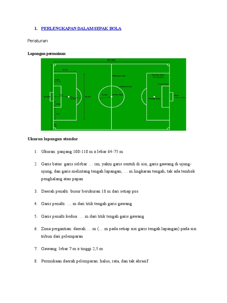 Buatlah Gambar Lapangan Dan Perlengkapan Permainan Sepak Bola Beserta Ukurannya