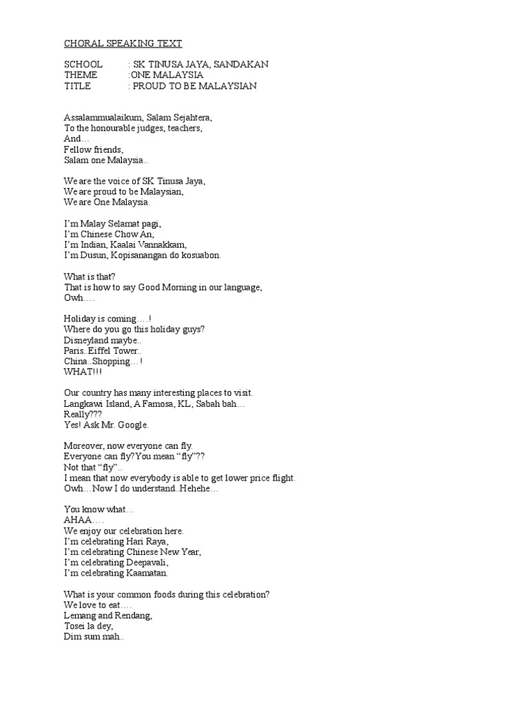 Choral speaking in malay. The team will form a thematic choir that embraces the passion or themes related to malay language and culture to the audience. Koir bercakap kata kiasan pandai berpetah entrepreneurship. There may be divisions of the whole group into light and dark voices broken and unbroken male and female treble and so on. Coral speaking atau cakap berirama h ari ini saya nak berkongsi sesuatu yang susah untuk di cari di lama google ini saya cakap macam tu sebab sy yang susah nak cari hehehe.