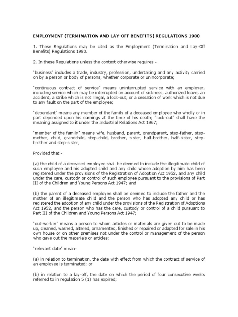 Termination Lay Off Benefits In Malaysia Layoff Employment