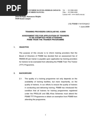 Training Providers Circular No 4 2009 Assessment Fee For Application Of Trainers To Be Exempted From Attending Psmb Train The Trainer Programme Personal Trainer Academic Certificate