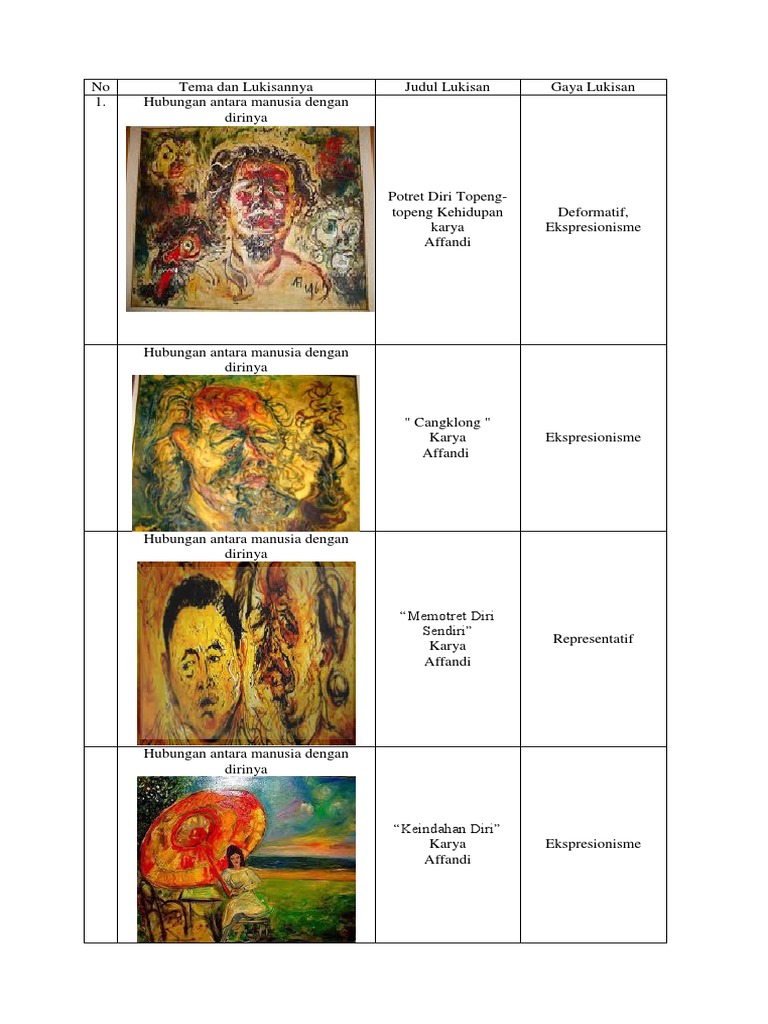 Tema Lukisam Judul Lukisan Gaya Lukisan Hubungan Antara Manusia Dan Dirinya Semdiri Brainly Co Id