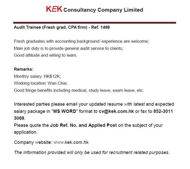 Audit Trainee Fresh Grad Cpa Firm Ref 149 Jobs Full Time Admin Office Finance On Carousell