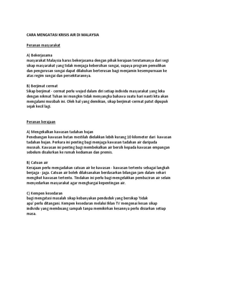 Kesan Krisis Air Di Malaysia Geografi Tingkatan 1