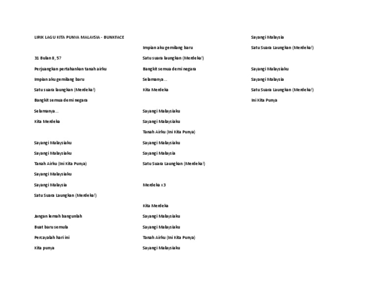 Kita Punya Malaysia Bunkface Lagu Tema Hari Kebangsaan 18 Lirik Di Skrin Dlm Kapsyen Web Bi Youtube