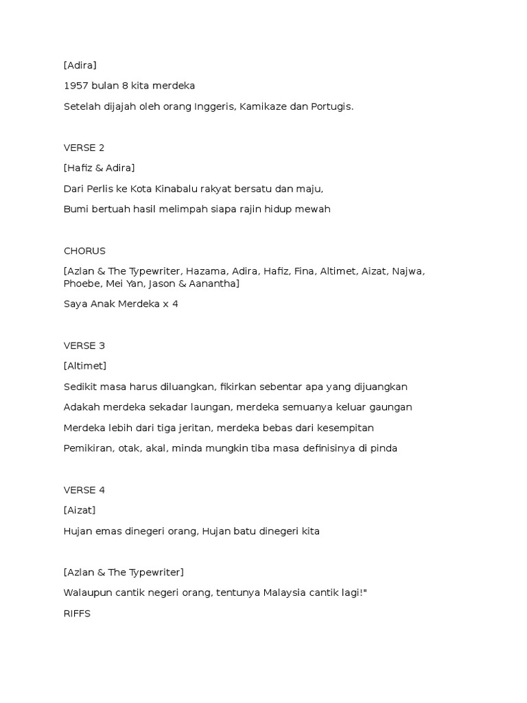 Lirik Lagu Saya Anak Malaysia Docx