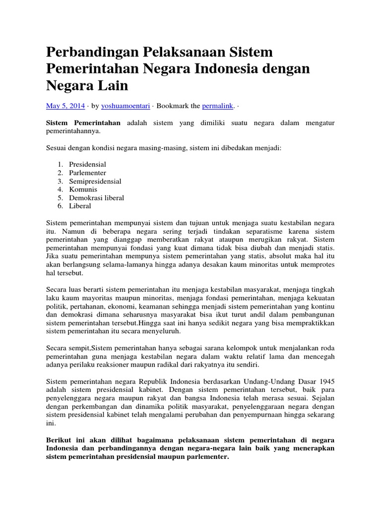 Pkn Perbandingan Sistem Pemerintahan Idnonesia Dengan Negara Lain