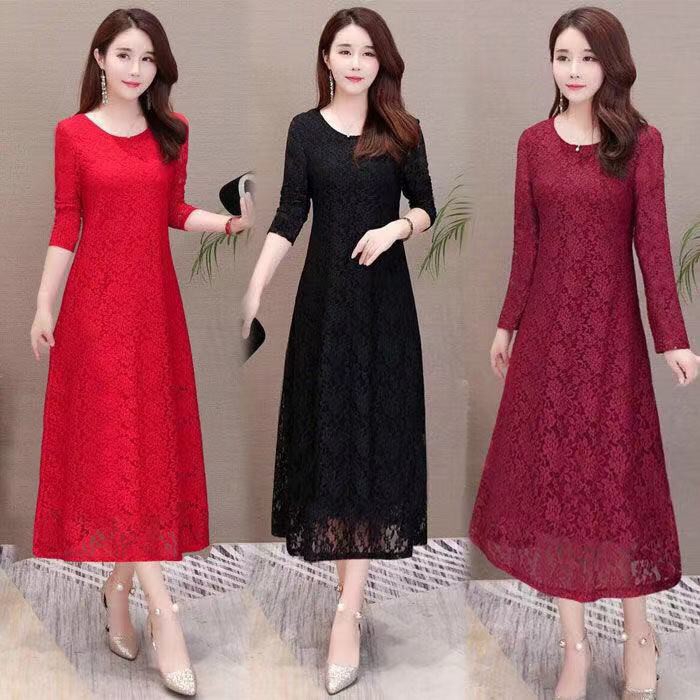 Wanita Lengan Panjang Gaun Renda Lembut Wanita Gemuk Berpakaian Gaun Muslin Gaun Panjang Shopee Indonesia