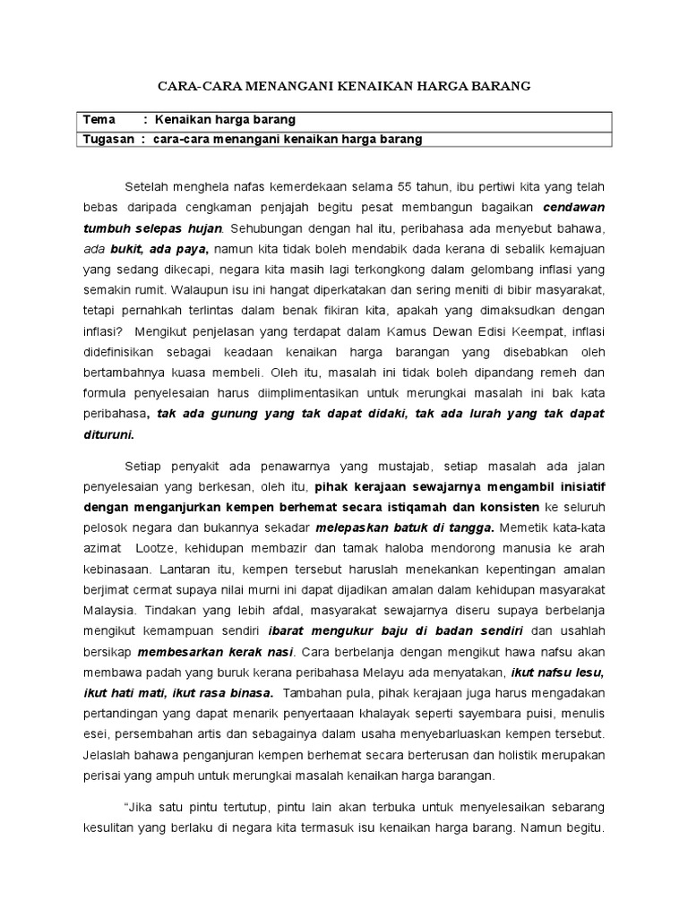 Contoh Karangan Bahasa Melayu Spm Kertas 1 Isu Kenaikan Harga Barang Karangan Bahasa Melayu Spm