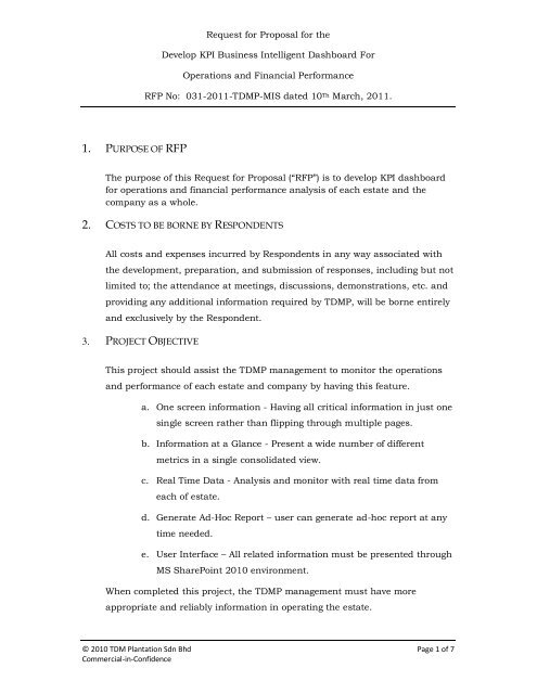 Request For Proposal For The Develop Kpi Business Tdm Berhad